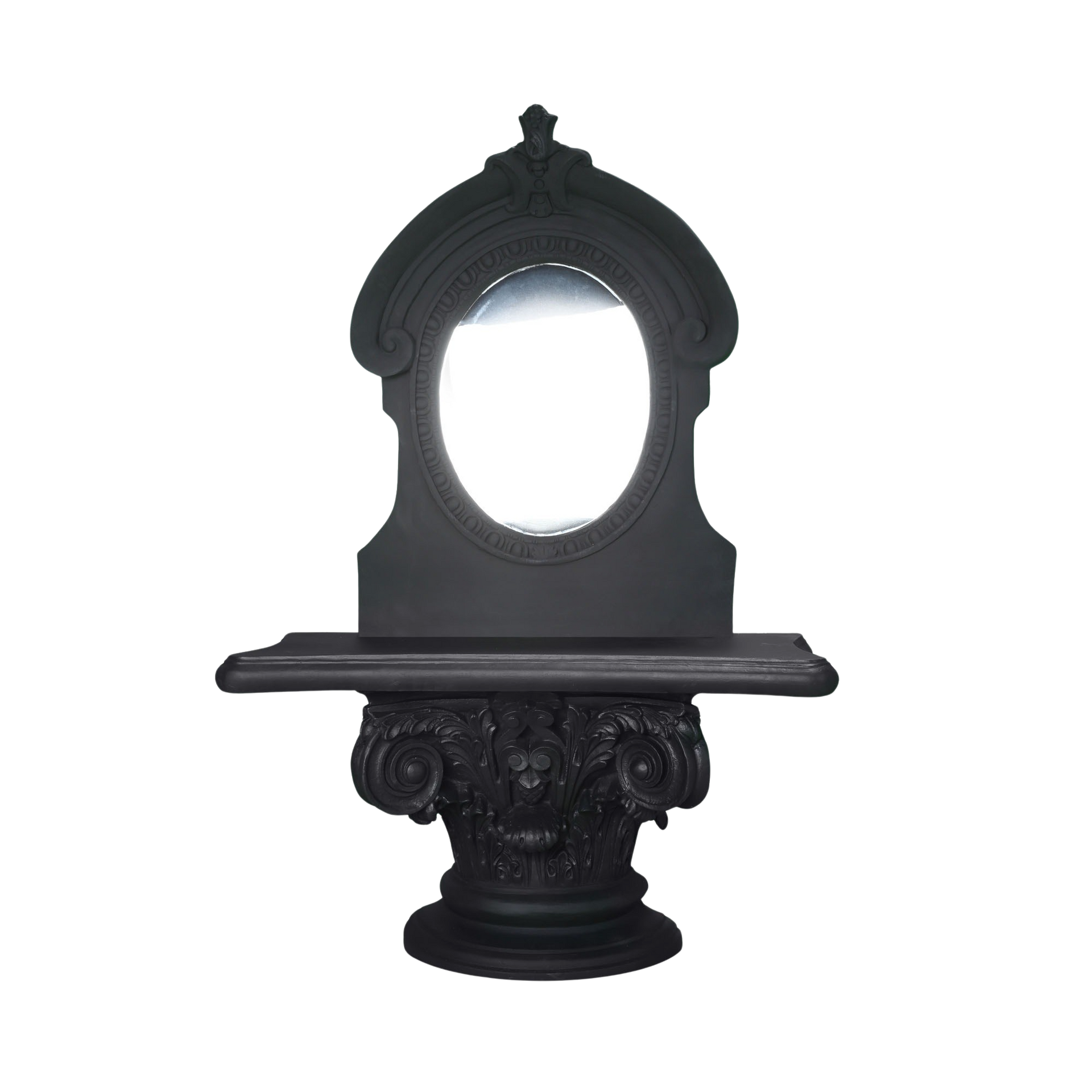FOR THE CORINTHIAN CONSOLE – The Corinth Mirror is specially designed to sit above the stunning Corinthian Console Table, either indoors or out. Decorated with French scrollwork and an oeil de boeuf or ‘ox eye’ mirror, this striking décor piece, and the lavish Corinthian Console Table, together make a spectacular pair.