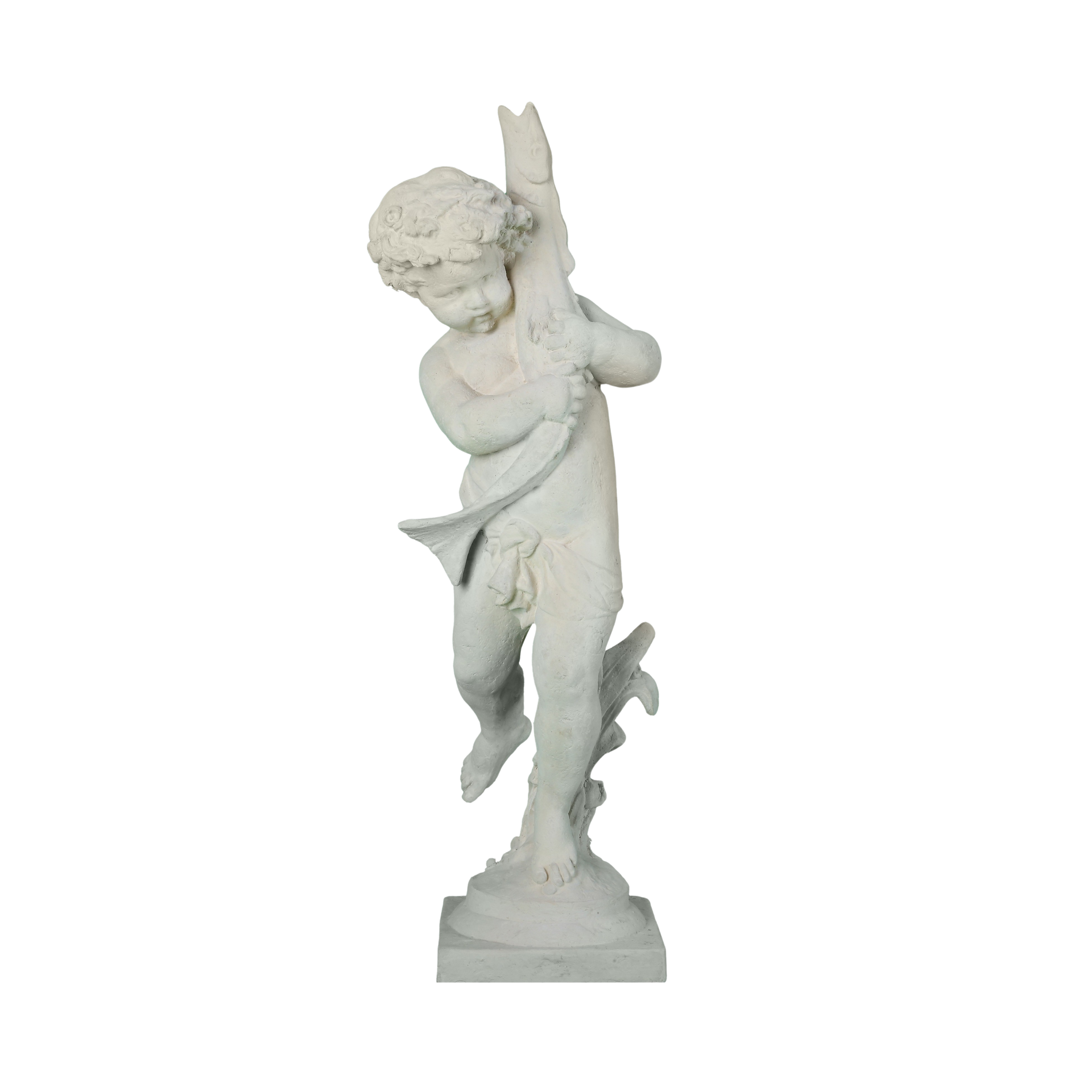 THE RIVERSIDE BOY – The standing Dante Boy clutches a fish to his chest so that water from its mouth tumbles down over both of them. A boy holding a fish is a classic figure in Italian art dating back to the Renaissance. This old-world fountain is suited to both formal and informal gardens, being classic and yet at the same time whimsical.