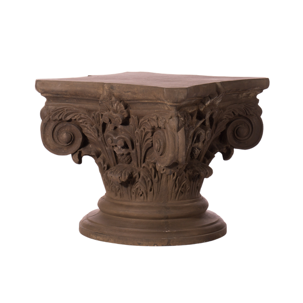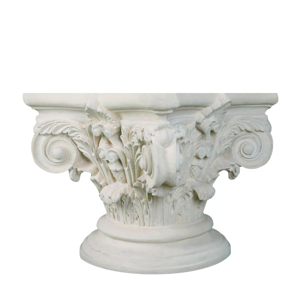 PURE SPLENDOUR – The Corinthian Dining Table Base is a single pedestal fashioned after the lavish capitals that once crowned Corinthian columns in ancient Greece. Lavish in ornament, this table base features bold, scrolling volutes surrounded by curling acanthus leaves, plus delicate acorns and palmettes. Designed to support a circular, stone table top, this beautiful base will command attention where ever it is placed, indoors or out.