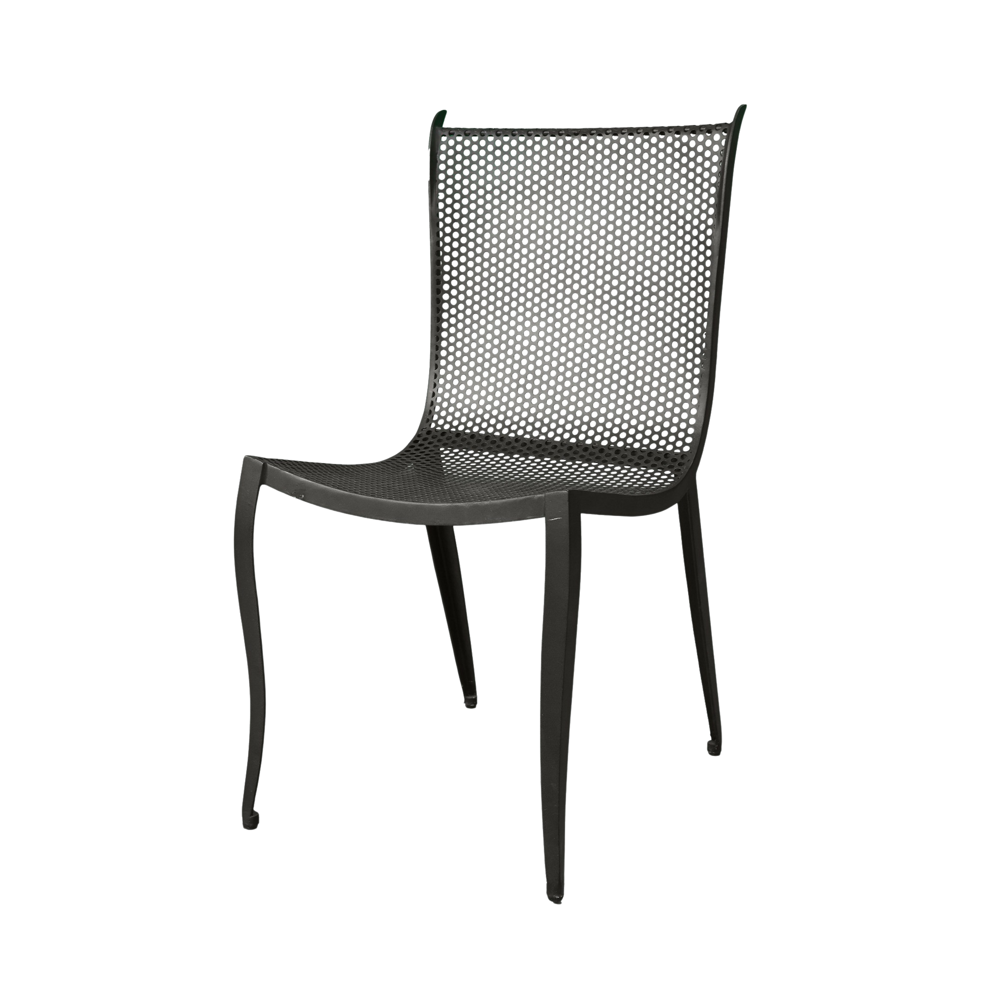 INDUSTRIAL COMFORT: The Keil Dining Chair, with its unique spherical grate design, stands as a testament to unconventional style, carved from perforated metal for a distinctively funky flair. This piece is a celebration of the post-industrial aesthetic, crafted for those who dare to defy the norm.