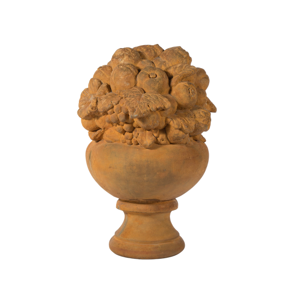 ETERNAL BOUNTY – With the Acari Fruit Vase, your outdoor leisure area will never be without the fruits of the earth. This goblet-shaped vase has a dainty foot and tall sides with elongated lobes. At the top, a cluster of peaches, pomegranates and more burst forth, making the bowl overflow with the bounties of nature. The Acari Fruit Vase makes a perfect centrepiece for an outdoor table. Alternately, it can stand as a pleasing garden ornament by a pathway or atop a low garden wall.
