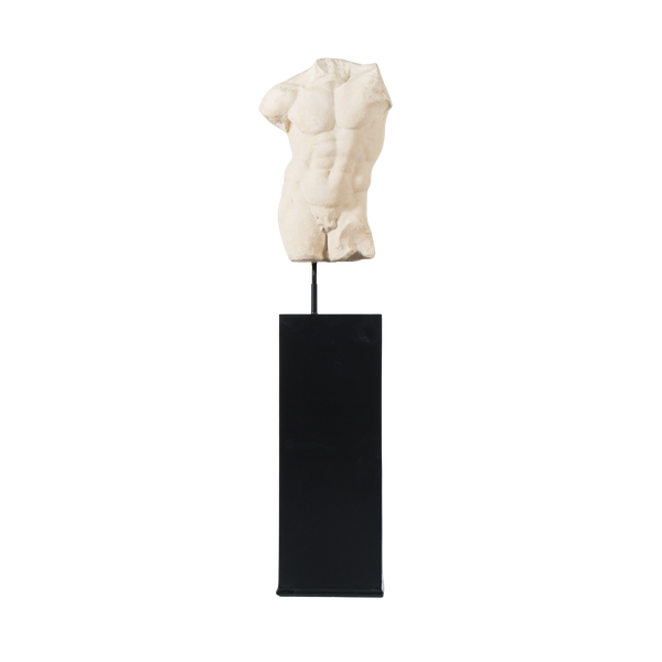 HERCULES AT REST – Andrea means strong and manly, a name aptly applied to this part-statue of Hercules, the greatest of all Greek heroes. Here, in torso alone, the weary champion stands leaning momentarily at rest, still to complete the twelve labours of strength and courage he was obliged to perform. The perfect musculature of the Andrea Torso will create a stunning focal point where ever it is placed. The torso is mounted on a Tekko stone stand (1075mm high), which has the appearance of a simple block of dressed stone with random marbling.