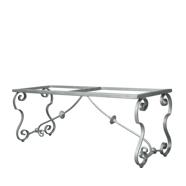 THE CÔTE D'AZUR – The willowy lines of the delicate St Tropez Dining Table Base support medium to large, stone table tops with ease. The graceful coils and shapely curves of this pretty, square table base belie both its solid strength and stability. Charming and airy, the St Tropez Dining Base is styled after tables found in villa gardens throughout the south of France.
